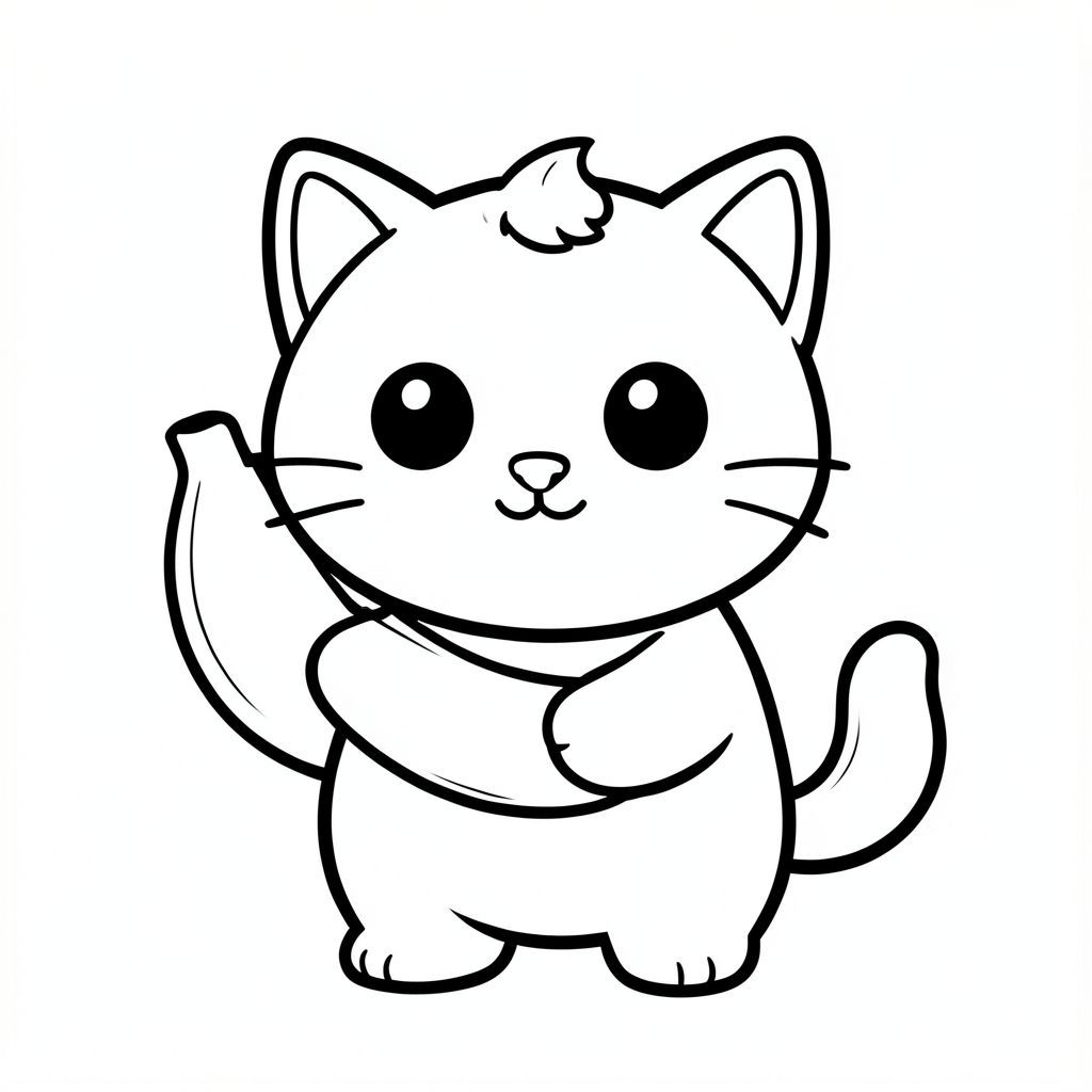 "Mèo con đang cầm một quả chuối. Chuối phải trong, sạch, đầy đủ và có thể nhìn thấy được.