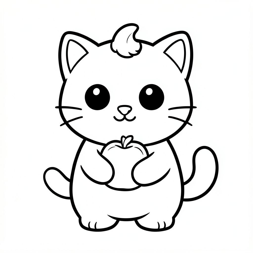 Mèo con ôm táo.