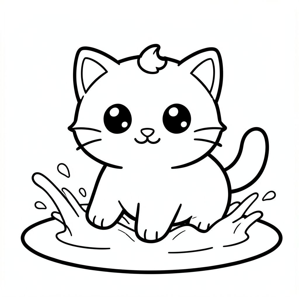 Mèo con tung tóe trong một vũng nước nhỏ.