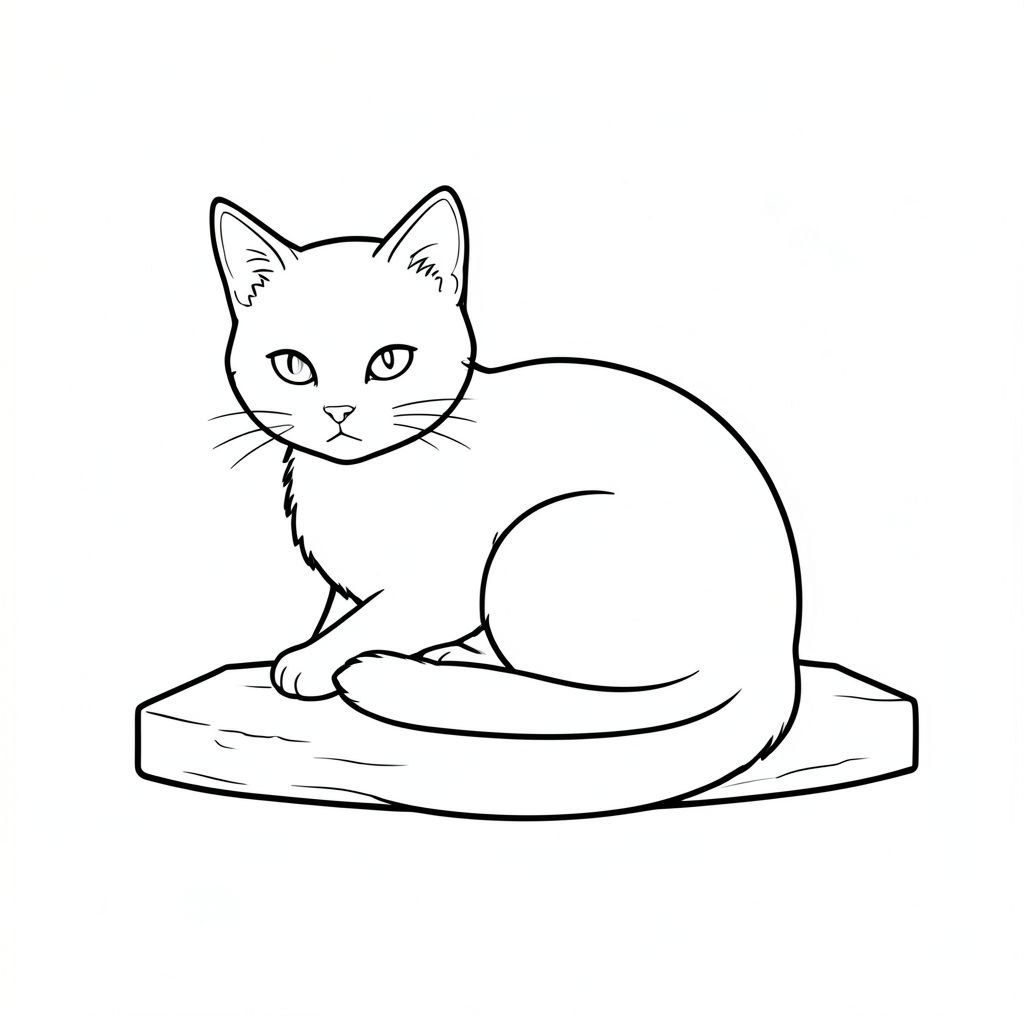 Tôi đã tập trung vào việc tạo ra một cảnh tối giản về mặt hình ảnh và nhấn mạnh hình dạng và tư thế của con mèo. Hãy cho tôi biết nếu bạn muốn tôi tinh chỉnh điều này thêm!, trang màu, nghệ thuật đường nét, nền trắng