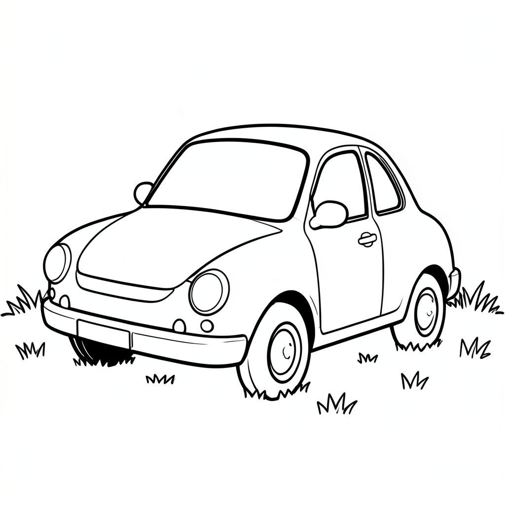 Một chiếc ô tô nhỏ kiên nhẫn ngồi trên một cánh đồng cỏ. Một đèn pha màu trắng duy nhất tỏa sáng rực rỡ, phản chiếu ánh sáng mặt trời. Thân xe trơn tru và đơn giản, với nội thất trắng sạch sẽ. Đó là một khung cảnh yên bình, mời gọi một cái chạm nhẹ nhàng., tranh tô màu đen trắng, phong cách lowbook, nghệ thuật đường nét, đơn sắc, không màu, không bóng, không xám, không tô màu, nền trắng, đường viền đen đặc, độ tương phản đậm, đường nét sắc nét, chỉ phác thảo, phong cách vector, thiết kế phẳng, 2d, chính xác một đuôi duy nhất, hoàn toàn không tô màu đen, nội thất trắng tinh khiết, không có miếng mực, không có văn bản, Không từ, không tiêu đề, hoàn toàn không màu, chỉ có lineart đen trắng thuần túy