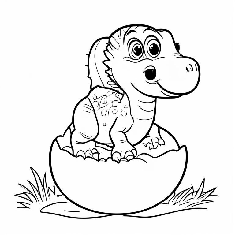 Một con khủng long con ra khỏi một quả trứng, đường viền đơn giản, đường dày, hình dạng lớn, tranh tô màu cho trẻ mới biết đi