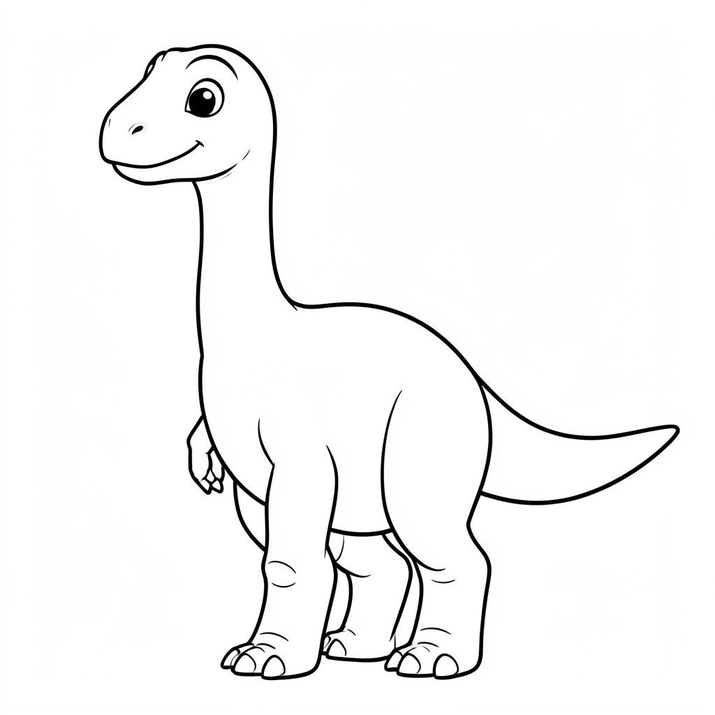Một con khủng long Jobaria. Làm cho nó trông thân thiện với đôi mắt to, dịu dàng và nụ cười nhỏ. Thể hiện cổ dài, đầu nhỏ, thân hình thùng, chân dày giống như cột trụ và một cái đuôi dài duy nhất. Giữ tỷ lệ cơ thể gần với Jobaria thật hơn, với cổ và đuôi thẳng và tự nhiên. Chỉ nghệ thuật đường nét, không màu sắc, không nền, đường viền rõ ràng phù hợp cho trẻ em tô màu. Tư thế nên đứng hoặc đi, đơn giản và dễ tô màu. Bốn chân.