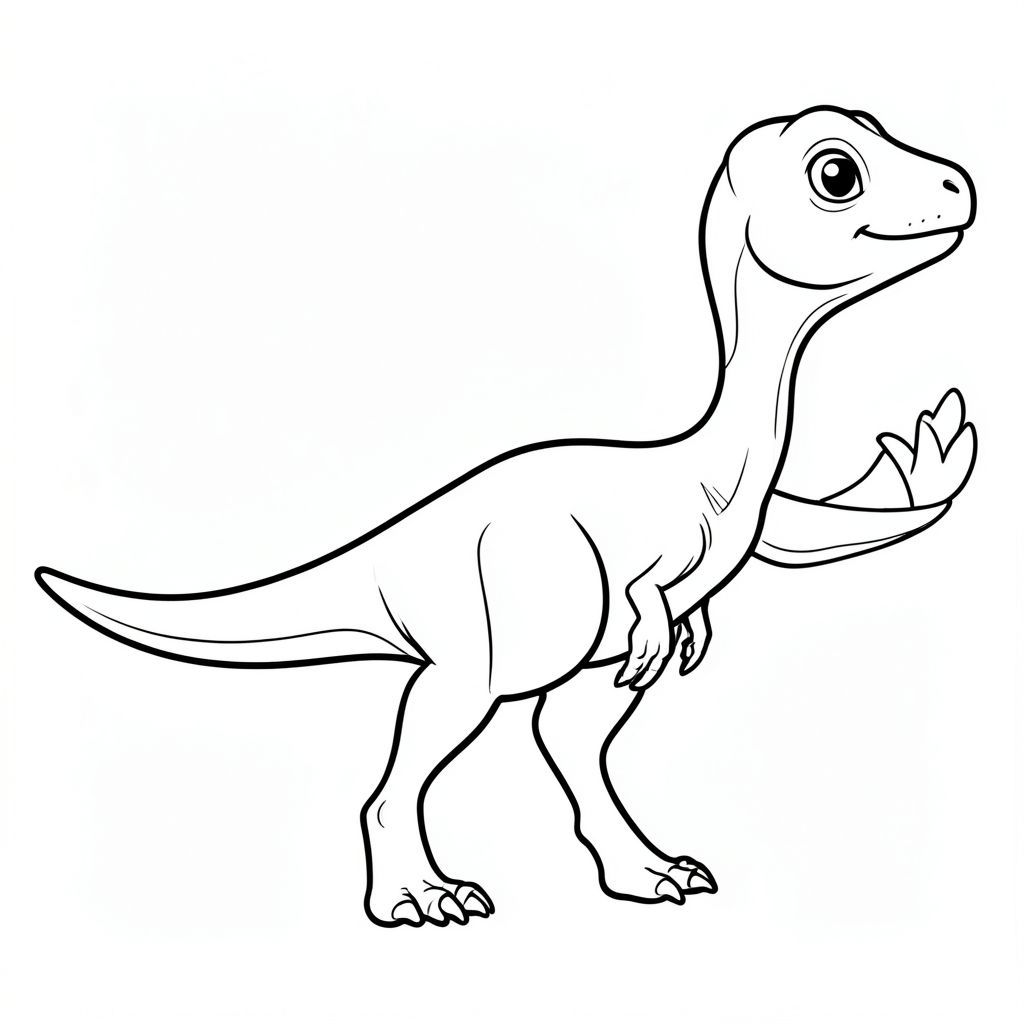 ]Một con khủng long Walgettosuchus vui tươi, cách điệu trong nghệ thuật đường nét sạch sẽ cho một cuốn sách tô màu dành cho trẻ em. Mặc dù loài động vật này chỉ được biết đến từ các hóa thạch rất hạn chế, nhưng hãy tưởng tượng nó là một loài khủng long chân thú hai chân từ nhỏ đến trung bình với đuôi dài, chân mảnh và cánh tay nhỏ đặc trưng của khủng long ăn thịt vào thời điểm đó (Giai đoạn đầu – giữa kỷ Phấn trắng, Úc). Biểu cảm thân thiện, không đáng sợ, đứng hoặc đi trong tư thế đơn giản. Chỉ nghệ thuật đường nét, không tô màu, không có nền, đường viền đậm rõ ràng phù hợp để trẻ dễ tô màu