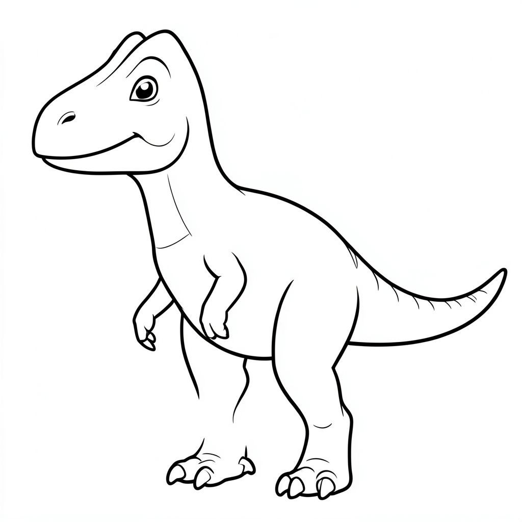 Một con khủng long Zalmoxes thân thiện, chính xác về mặt lịch sử trong nghệ thuật đường nét đơn giản cho một cuốn sách tô màu dành cho trẻ em. Cho thấy một loài động vật ăn cỏ hai chân nhỏ, mập mạp với đầu hình tam giác lớn, miệng giống mỏ, chân khỏe và đuôi dài đặc trưng của động vật chân chim cuối kỷ Phấn trắng. Tạo cho nó một biểu cảm nhẹ nhàng, không đáng sợ và một tư thế đứng bình tĩnh. Chỉ nghệ thuật đường nét, không tô màu, không có nền, đường viền đậm đơn giản phù hợp để trẻ em dễ dàng tô màu