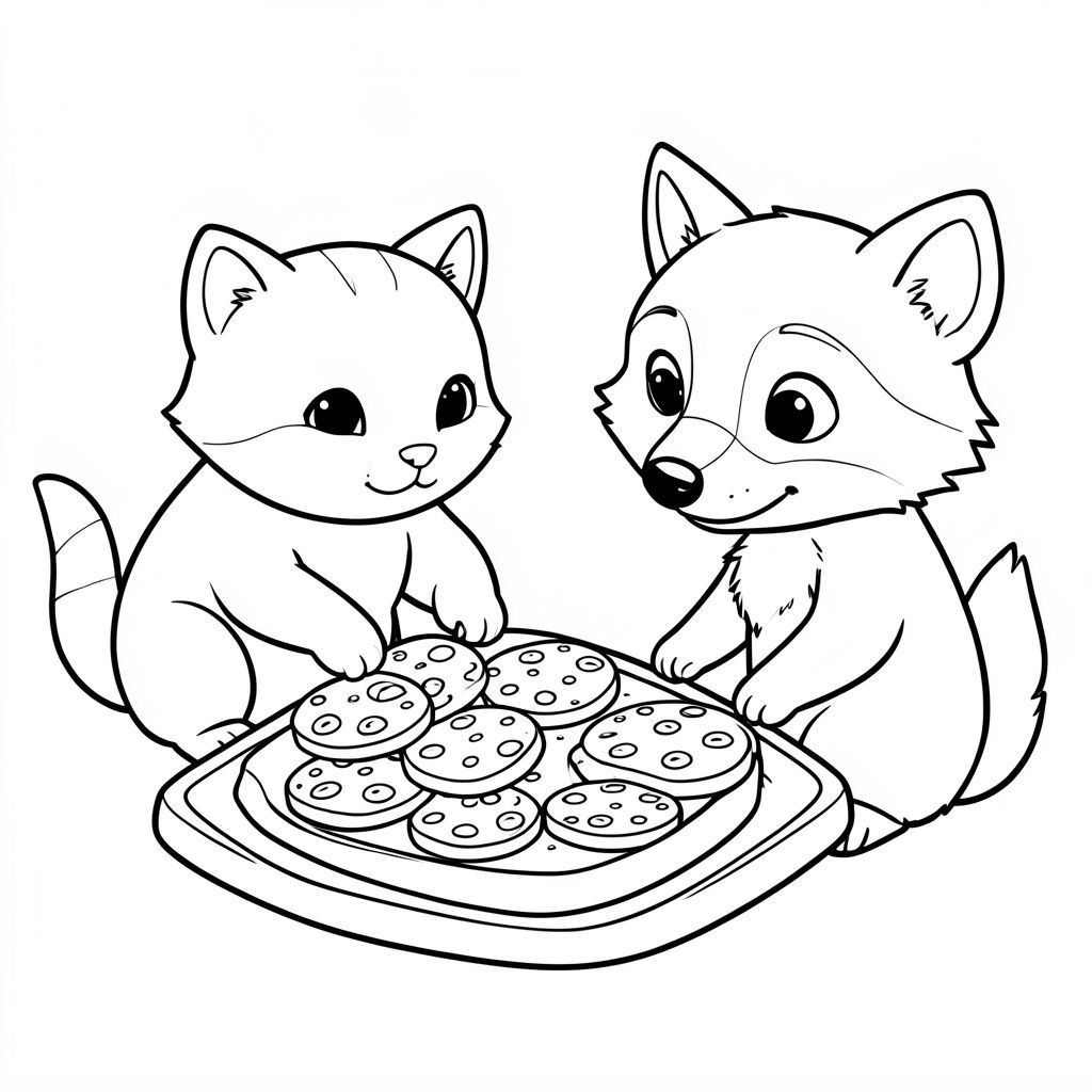 một con mèo và một con gấu trúc nướng bánh quy