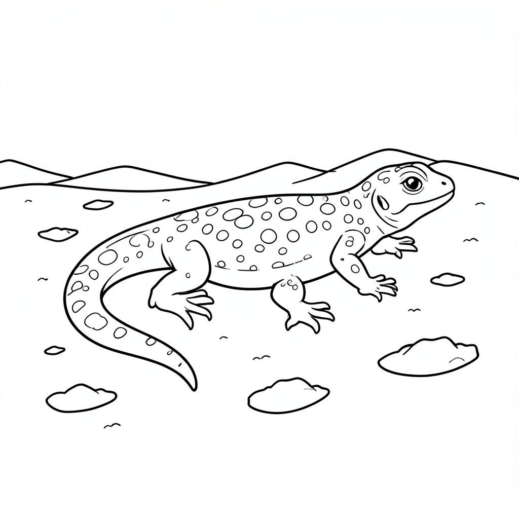 Một con thằn lằn có đốm trong sa mạc với một loạt các lỗ được đào trên cát