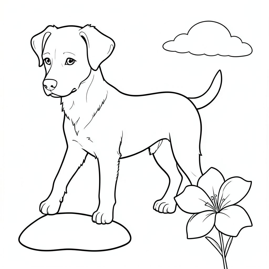 Bên dưới, một tảng đá nhỏ, nhẵn nằm ở phía trước, hơi nghiêng. Ở bên phải, một bông hoa trong mờ mở ra, cánh hoa của nó tạo thành một đường cong nhẹ nhàng. Một đám mây trắng mềm mại trôi dạt ở hậu cảnh, có kết cấu tinh tế. Bộ lông của có màu kem, với những biến thể tinh tế về tông màu. Các đường nét chính xác và tinh tế, nhấn mạnh hình dạng tự nhiên của., tranh tô màu đen trắng, phong cách lowbook, nghệ thuật đường nét, đơn sắc, không màu, không bóng, không xám, không tô màu, nền trắng, chỉ phác thảo, phong cách vector, thiết kế phẳng, 2d, chính xác một cái đuôi duy nhất, hoàn toàn không tô màu đen, nội thất trắng tinh khiết, không có miếng mực, không có văn bản, không có từ, không có tiêu đề, Hoàn toàn không có màu, chỉ có lineart đen trắng thuần túy
