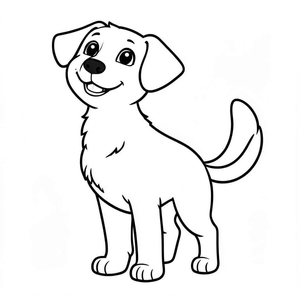 Một nhỏ, hạnh phúc đứng thẳng. Khuôn mặt của nó nghiêng lên trên, nở một nụ cười rạng rỡ, chân thành. Đôi mắt của to và biểu cảm, một sự dịu dàng, ấm áp . Bộ lông của mềm, . Một đường đơn, dày, kéo dài từ lưng dưới của chó, tạo thành một cái đuôi. Đuôi là một đường hơi cong. Cơ thể của có hình dạng đơn giản, màu trắng. Nền là một vùng trắng trơn, không bị phá vỡ., trang tô màu đen trắng, phong cách lowbook, nghệ thuật đường nét, đơn sắc, không màu, không bóng, không xám, không điền, nền trắng, chỉ phác thảo, phong cách vector, thiết kế phẳng, 2d, chính xác một đuôi duy nhất, hoàn toàn không tô màu đen, nội thất trắng tinh khiết, không có miếng mực, không văn bản, không từ, không tiêu đề, hoàn toàn không màu, Chỉ Pure Black and White Linarts