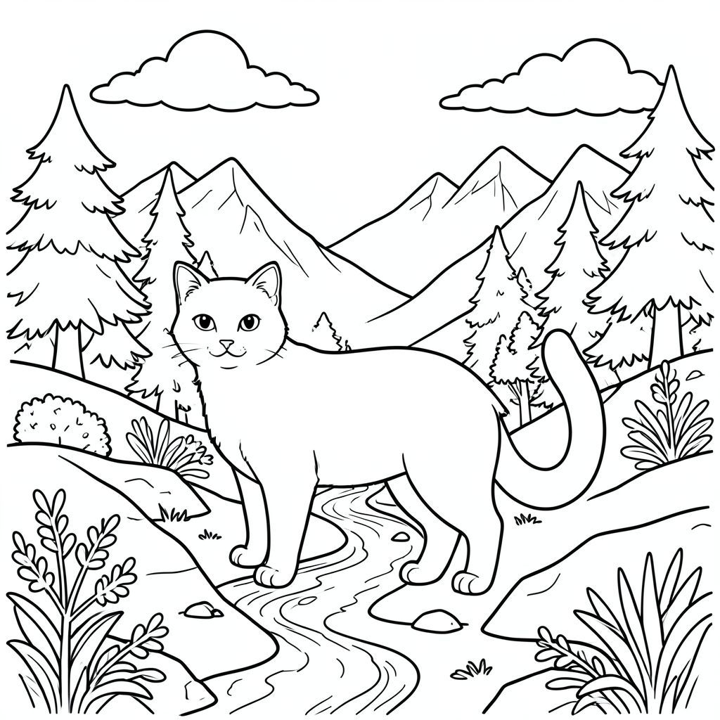solo, chủ đề đơn, bốn chân, một đầu, một đuôi, đúng giải phẫu, con mèo, Thung lũng núi, tuyết, tan chảy, suối, mùa xuân, tán lá, đá, cây, Ánh sáng mặt trời, đám mây, Trang màu, nghệ thuật đường, nền trắng, solo, chủ đề đơn, đúng giải phẫu, giải phẫu hoàn hảo