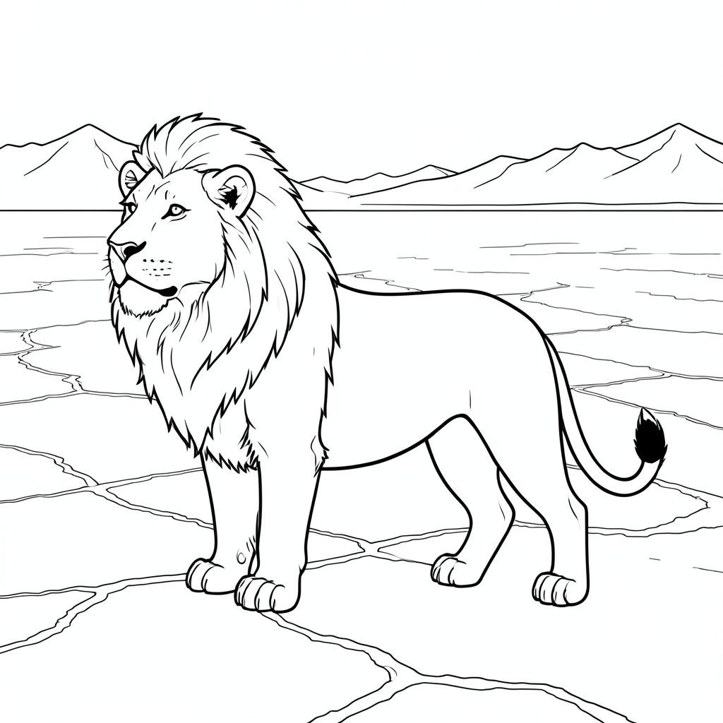solo, chủ đề đơn, bốn chân, một đầu, một đuôi, đúng giải phẫu, sư tử, muối rộng lớn phẳng, trắng, bằng phẳng, núi, xa, hoang vắng, mở rộng, rộng, đường chân trời, trang màu, nghệ thuật đường nét, nền trắng, solo, chủ đề đơn, đúng giải phẫu, giải phẫu hoàn hảo