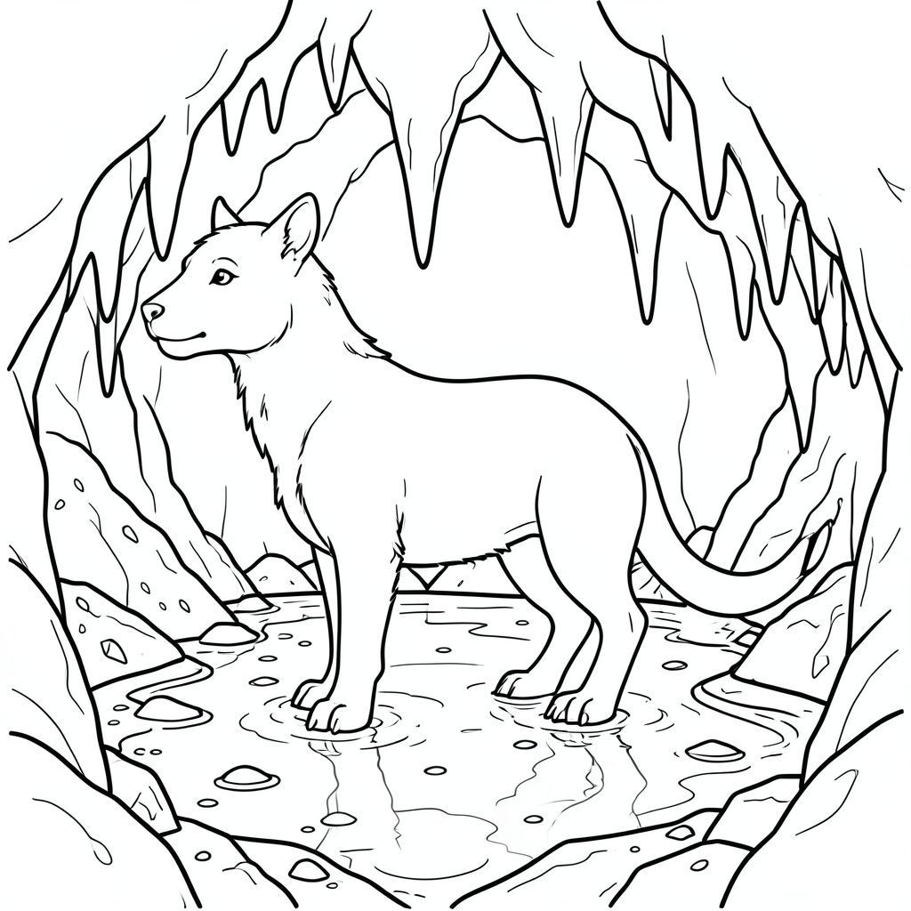 solo, chủ đề đơn, bốn chân, một đầu, một đuôi, đúng giải phẫu, thú vật, phát quang sinh học, hang động, nhũ đá, hồ bơi ngầm, ẩm ướt, đá, giàu khoáng chất, nước, phản chiếu, thanh tao, trang màu, nghệ thuật đường, nền trắng, solo, chủ đề đơn, đúng giải phẫu, giải phẫu hoàn hảo