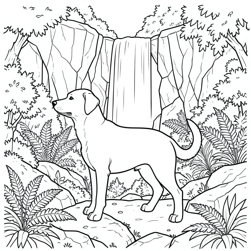 solo, chủ đề đơn, bốn chân, một đầu, một đuôi, đúng về mặt giải phẫu,, vách đá tuyệt đối, thác nước xếp tầng, tán lá rậm rạp, đá phủ rêu, rừng dương xỉ, địa hình đá, môi trường thực tế, kết cấu chi tiết, nền phức tạp, nội thất trắng, trang màu, nghệ thuật đường, nền trắng, solo, chủ đề đơn, chính xác về mặt giải phẫu, giải phẫu hoàn hảo
