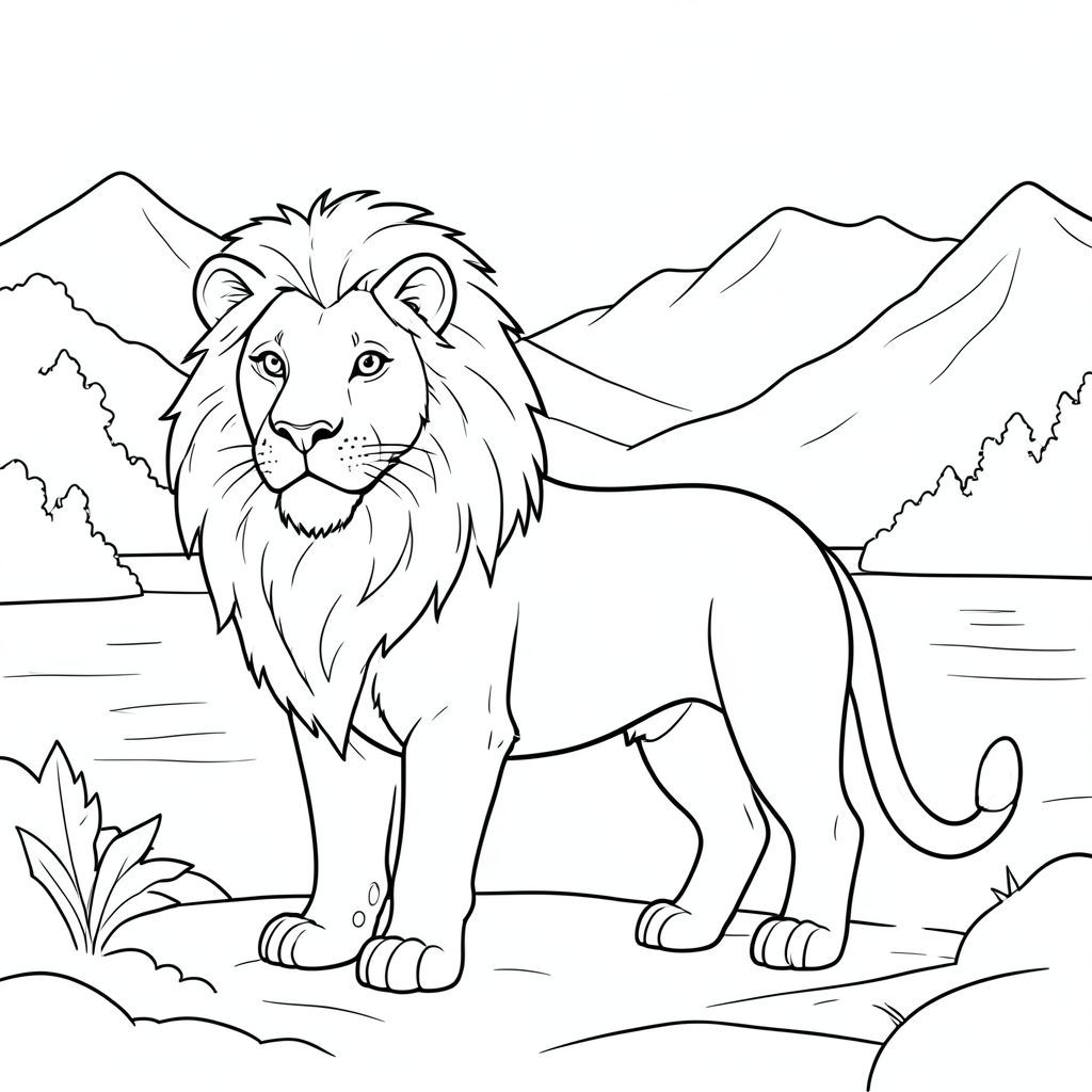solo, chủ đề đơn, một đầu, hai mắt, hai tai, bốn chân, một đuôi, đúng giải phẫu, sư tử, sương mù, buổi sáng, hồ, điềm tĩnh, thanh thản, yên tĩnh, yên bình, yên tĩnh, mở rộng, núi, trang màu, nghệ thuật đường, nền trắng, solo, chủ đề đơn, đúng về mặt giải phẫu, giải phẫu hoàn hảo