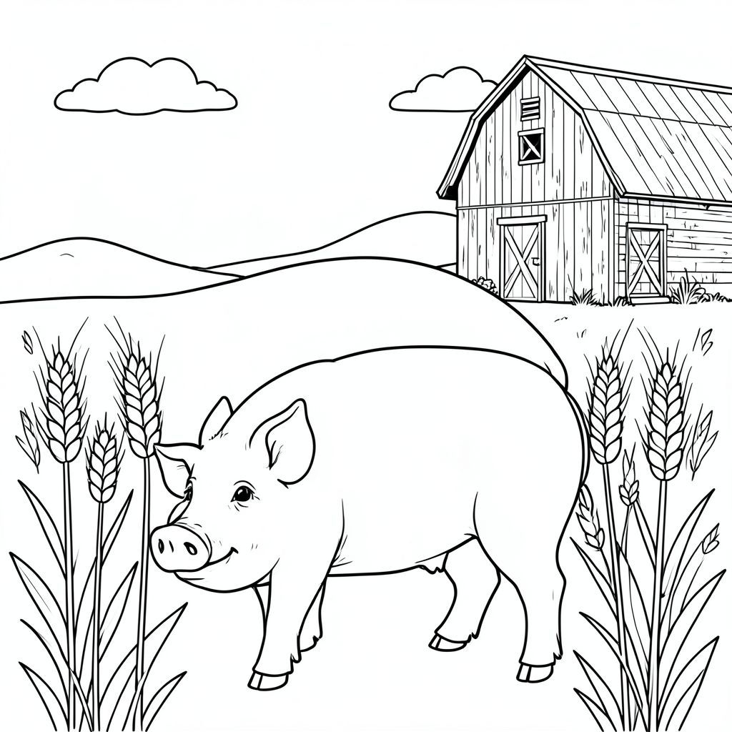 solo, chủ đề đơn, một đầu, hai mắt, hai tai, bốn chân, một đuôi, tỷ lệ tự nhiên, quy mô thích hợp trong môi trường, chính xác về mặt giải phẫu, Con lợn, cánh đồng lúa mì, đơn giản, lý lịch, Nông thôn, Chuồng trại cũ, Phong hóa, dọn dẹp, nắng, đường chân trời, Bầu trời, trang màu, nghệ thuật đường, nền trắng, solo, chủ đề đơn, đúng giải phẫu, giải phẫu hoàn hảo