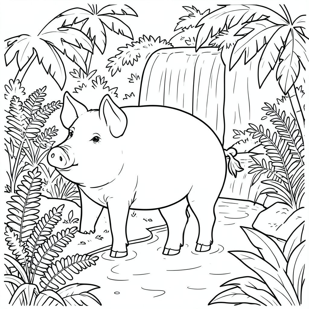 solo, chủ đề đơn, một đầu, hai mắt, hai tai, bốn chân, một đuôi, tỷ lệ tự nhiên, quy mô thích hợp trong môi trường, chính xác về mặt giải phẫu, Con lợn, Dương xỉ, tươi tốt, nhiệt đới, vườn, thác nước, nhẹ nhàng, dòng suối, trong sáng, Nước, Ánh sáng mặt trời, trang màu, nghệ thuật đường, nền trắng, solo, chủ đề đơn, đúng về mặt giải phẫu, giải phẫu hoàn hảo