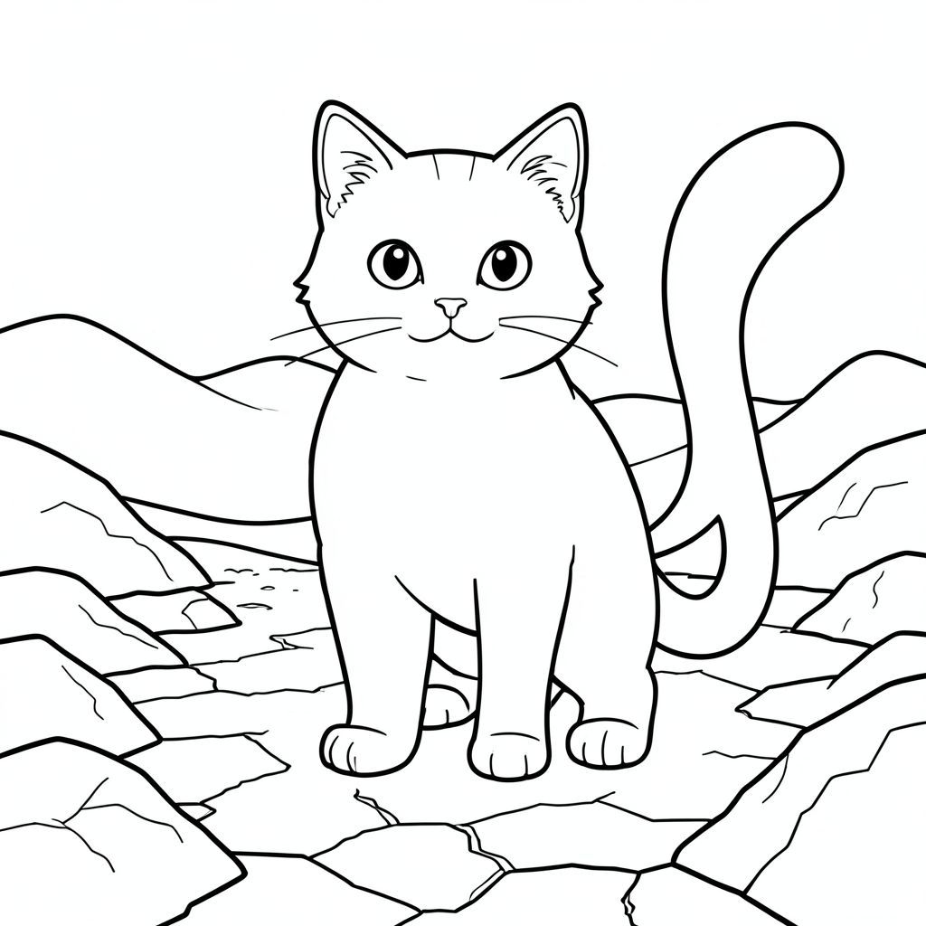 solo, chủ đề đơn, một đầu, hai mắt, hai tai, bốn chân, một đuôi, tỷ lệ tự nhiên, quy mô thích hợp trong môi trường, chính xác về mặt giải phẫu, con mèo, Sa mạc, thiêu đốt, sương mù nhiệt, ánh sáng mặt trời, mãnh liệt, khô, cát, cồn cát, đá, Trái đất nứt, trang màu, nghệ thuật đường, nền trắng, solo, chủ đề đơn, chính xác về mặt giải phẫu, giải phẫu hoàn hảo
