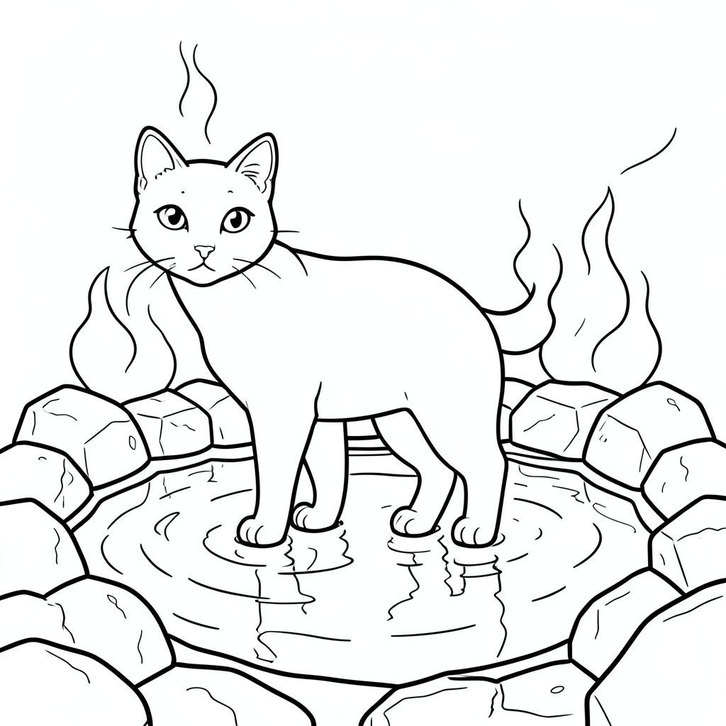 solo, chủ đề đơn, một đầu, hai mắt, hai tai, bốn chân, một đuôi, tỷ lệ tự nhiên, quy mô thích hợp trong môi trường, chính xác về mặt giải phẫu, mèo, tiền gửi khoáng, nước hấp, nước nóng, hồ bơi, đá, đá, phản chiếu, hơi, nhiệt, độ sâu, trang màu, nghệ thuật đường, nền trắng, solo, chủ đề đơn, chính xác về mặt giải phẫu, giải phẫu hoàn hảo