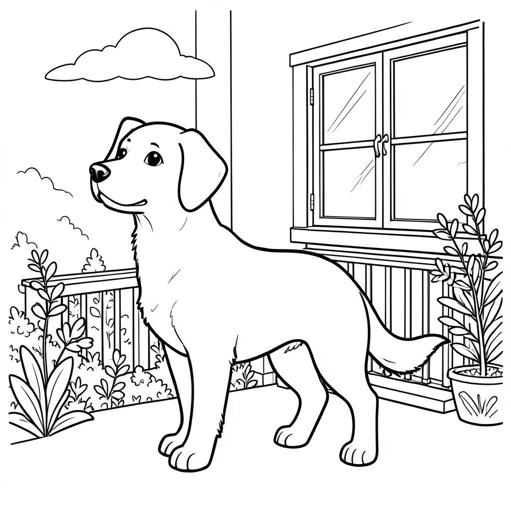 solo, chủ đề đơn, một đầu, hai mắt, hai tai, bốn chân, một đuôi, tỷ lệ tự nhiên, quy mô thích hợp trong môi trường, đúng giải phẫu,, Ban công, cửa sổ, thực vật, vườn, ánh sáng mặt trời, bầu trời quang đãng, đơn giản, sạch sẽ, yên bình, yên tĩnh, trang màu, nghệ thuật đường, nền trắng, solo, chủ đề đơn, đúng về mặt giải phẫu, giải phẫu hoàn hảo