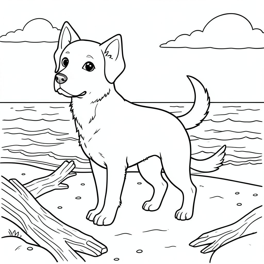 solo, chủ đề đơn, một đầu, hai mắt, hai tai, bốn chân, một đuôi, tỷ lệ tự nhiên, quy mô thích hợp trong môi trường, đúng giải phẫu,, bờ biển, cát, lũa, bờ biển, hoàng hôn, Bầu trời, sóng, đại dương, ấm áp, rõ ràng, trang màu, nghệ thuật đường, nền trắng, solo, chủ đề đơn, đúng về mặt giải phẫu, giải phẫu hoàn hảo