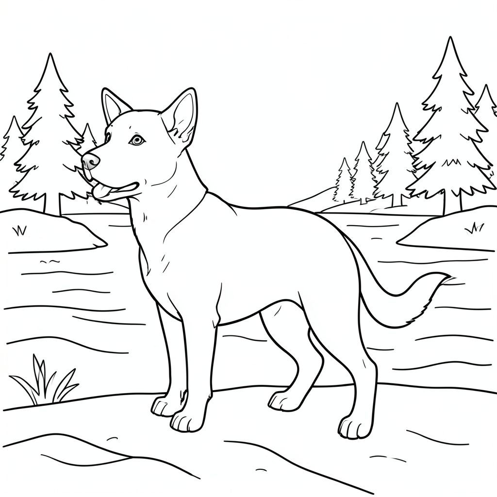 solo, chủ đề đơn, một đầu, hai mắt, hai tai, bốn chân, một đuôi, tỷ lệ tự nhiên, quy mô thích hợp trong môi trường, đúng giải phẫu,, bờ biển, hồ, sóng, cây thông, đơn giản, dọn dẹp, lý lịch, yên tĩnh, yên bình, nhẹ nhàng, tô màu, nghệ thuật đường, nền trắng, solo, chủ đề đơn, đúng giải phẫu, giải phẫu hoàn hảo