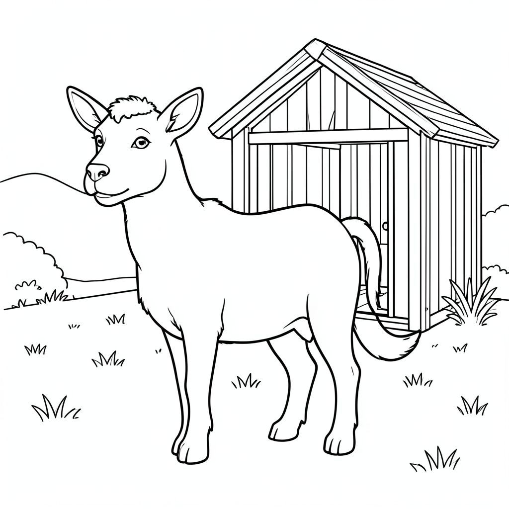 solo, chủ đề đơn, một đầu, hai mắt, hai tai, bốn chân, một đuôi, tỷ lệ tự nhiên, quy mô thích hợp trong môi trường, đúng giải phẫu,, bút dê, nhỏ, Nơi trú ẩn bằng gỗ, đơn giản, dọn dẹp, lý lịch, trang trại, nhỏ, ngoài trời, cỏ, trang màu, nghệ thuật đường, nền trắng, solo, chủ đề đơn, đúng về mặt giải phẫu, giải phẫu hoàn hảo