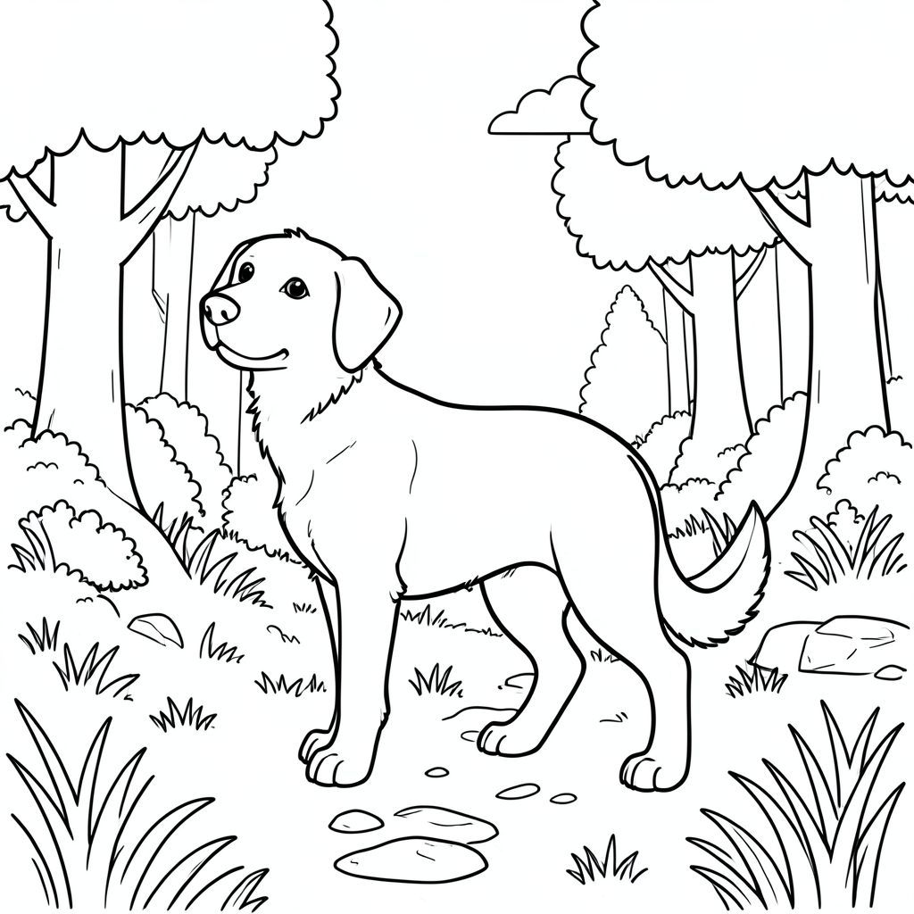 solo, chủ đề đơn, một đầu, hai mắt, hai tai, bốn chân, một đuôi, tỷ lệ tự nhiên, quy mô thích hợp trong môi trường, đúng giải phẫu, chó, cây cối, rừng, ánh sáng mặt trời, bầu trời, đồng cỏ, con đường, đá, mộc mạc, đơn giản, trang màu, nghệ thuật đường, nền trắng, solo, chủ đề đơn, đúng về mặt giải phẫu, giải phẫu hoàn hảo