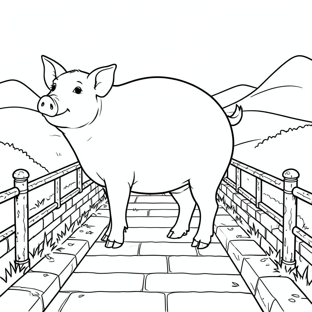 solo, chủ đề đơn, một đầu, hai mắt, hai tai, bốn chân, một đuôi, tỷ lệ tự nhiên, quy mô thích hợp trong môi trường, đúng giải phẫu, Con lợn, Con đường hẹp, kênh, gạch, bàn là, Lan can, Phong hóa, đơn giản, dọn dẹp, lý lịch, phong cảnh, trang màu, nghệ thuật đường, nền trắng, solo, chủ đề đơn, đúng giải phẫu, giải phẫu hoàn hảo