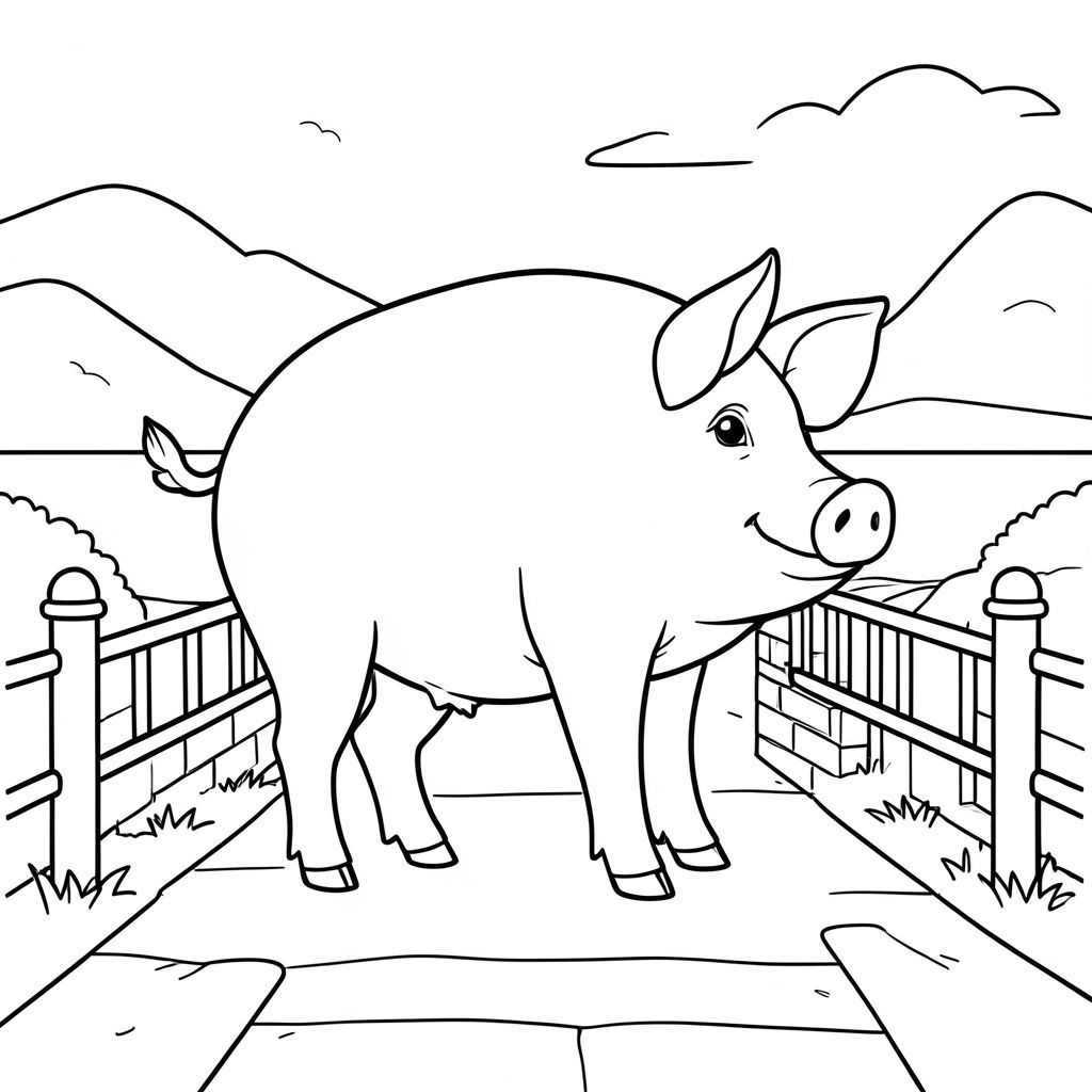 solo, chủ đề đơn, một đầu, hai mắt, hai tai, bốn chân, một đuôi, tỷ lệ tự nhiên, quy mô thích hợp trong môi trường, đúng giải phẫu, Con lợn, Kênh hẹp, gạch, bàn là, Lan can, con đường, đơn giản, sạch sẽ, lý lịch, phong cảnh, Nước, tô màu, nghệ thuật đường, nền trắng, solo, chủ đề đơn, đúng về giải phẫu, giải phẫu hoàn hảo