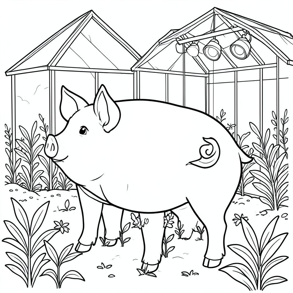solo, chủ đề đơn, một đầu, hai mắt, hai tai, bốn chân, một đuôi, tỷ lệ tự nhiên, quy mô thích hợp trong môi trường, đúng giải phẫu, con lợn, nhà kính, cây con, phát triển đèn, ánh sáng mặt trời, đơn giản, sạch sẽ, trong nhà, nông thôn, lý lịch, tán lá, trang màu, nghệ thuật đường, nền trắng, solo, chủ đề đơn, chính xác về mặt giải phẫu, giải phẫu hoàn hảo