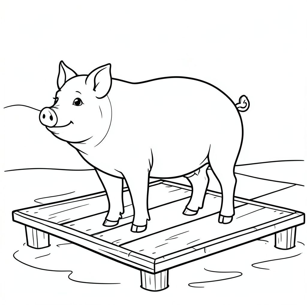 solo, chủ đề đơn, một đầu, hai mắt, hai tai, bốn chân, một đuôi, tỷ lệ tự nhiên, quy mô thích hợp trong môi trường, đúng giải phẫu, Con lợn, vịnh, bến tàu bằng gỗ, nước lặng, nền đơn giản, môi trường sạch sẽ, nhỏ, độc thân, sách truyện, thuần khiết, trang màu, nghệ thuật đường, nền trắng, solo, chủ đề đơn, đúng về mặt giải phẫu, giải phẫu hoàn hảo