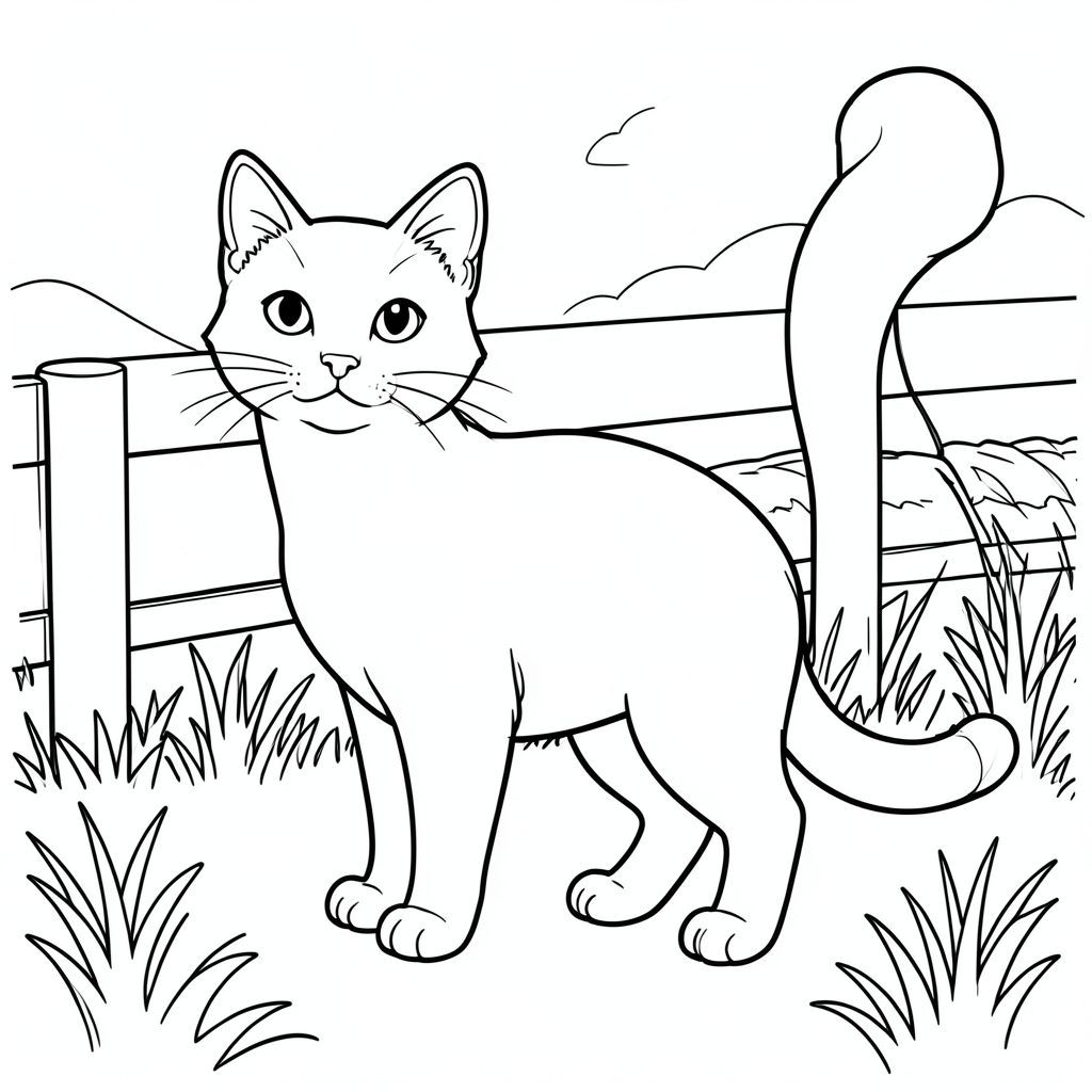 solo, chủ đề đơn, một đầu, hai mắt, hai tai, bốn chân, một đuôi, tỷ lệ tự nhiên, quy mô thích hợp trong môi trường, đúng giải phẫu, con mèo, Bãi cỏ, hàng rào, cỏ khô, cỏ, nền đơn giản, dọn dẹp, hình minh họa, khoa học, sách truyện, tinh khiết, trang màu, nghệ thuật đường, nền trắng, solo, chủ đề đơn, chính xác về mặt giải phẫu, giải phẫu hoàn hảo
