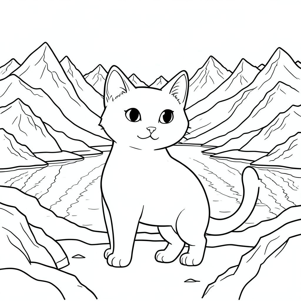solo, chủ đề đơn, một đầu, hai mắt, hai tai, bốn chân, một đuôi, tỷ lệ tự nhiên, quy mô thích hợp trong môi trường, đúng giải phẫu, con mèo, Núi, hồ, tuyết, Đỉnh, răng cưa, phản chiếu, lạnh, hoang vắng, rộng lớn, Mở rộng, trang tô màu, nghệ thuật đường, nền trắng, solo, chủ đề đơn, đúng về mặt giải phẫu, giải phẫu hoàn hảo