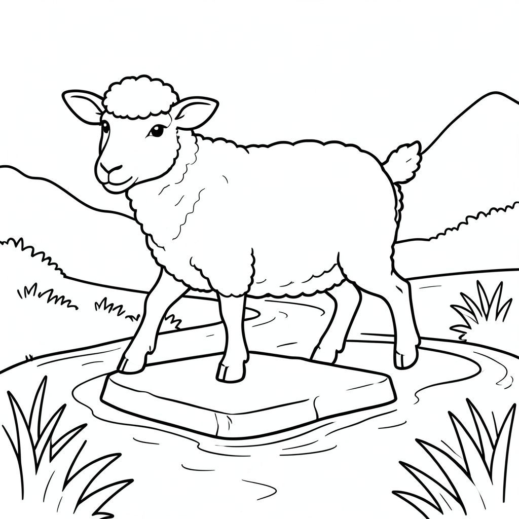 solo, chủ đề đơn, một đầu, hai mắt, hai tai, bốn chân, một đuôi, tỷ lệ tự nhiên, quy mô thích hợp trong môi trường, đúng giải phẫu, Cừu, bước đệm, suối, nông, nhẹ nhàng, con đường, đơn giản, sạch sẽ, lý lịch, phong cảnh, tự nhiên, trang màu, nghệ thuật đường, nền trắng, solo, chủ đề đơn, đúng về mặt giải phẫu, giải phẫu hoàn hảo