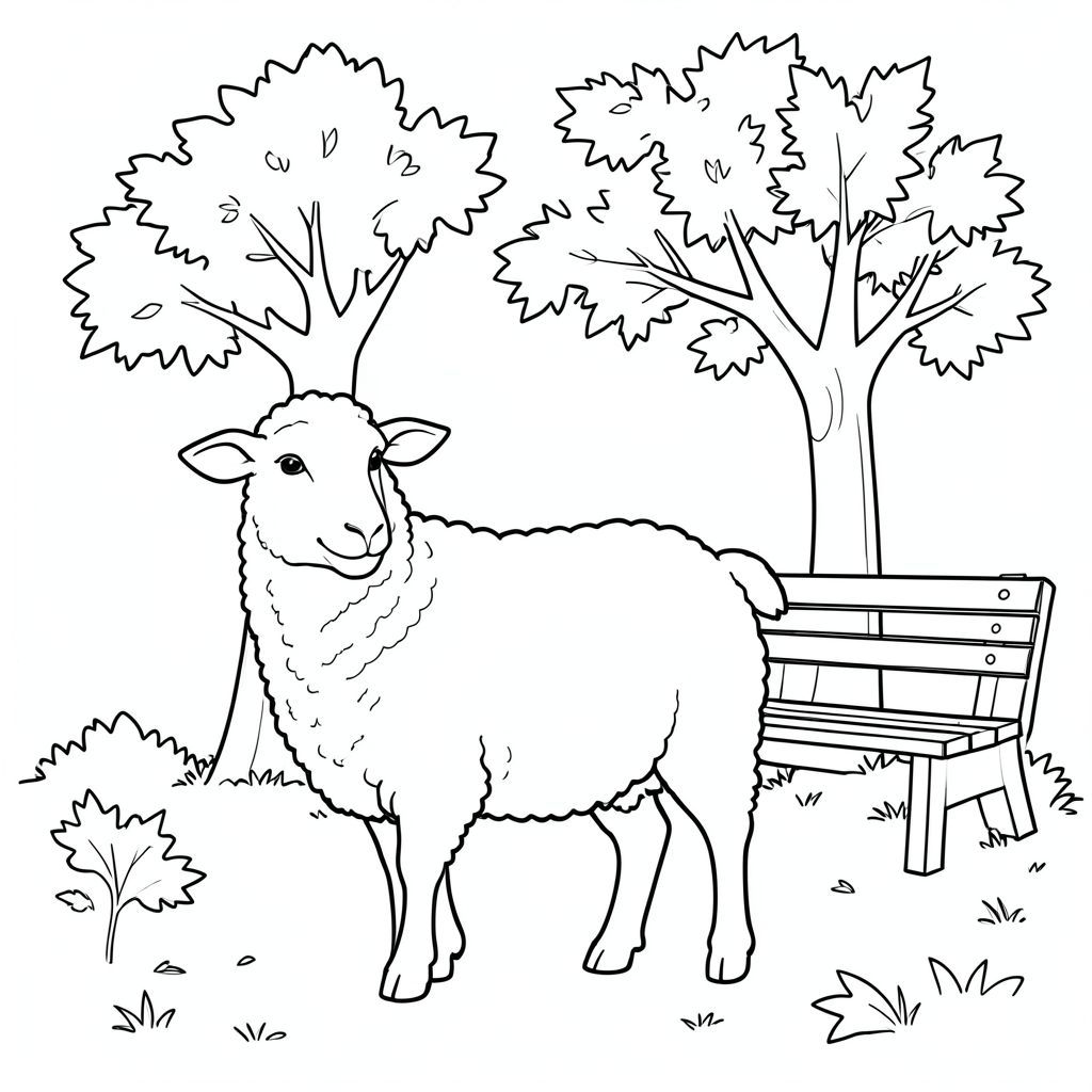 solo, chủ đề đơn, một đầu, hai mắt, hai tai, bốn chân, một đuôi, tỷ lệ tự nhiên, quy mô thích hợp trong môi trường, đúng giải phẫu, Cừu, cây sồi, lá mùa thu, băng ghế công viên, nhỏ, nền đơn giản, sạch sẽ, bằng phẳng, tự nhiên, sàn rừng, trang màu, nghệ thuật đường, nền trắng, solo, chủ đề đơn, chính xác về mặt giải phẫu, giải phẫu hoàn hảo