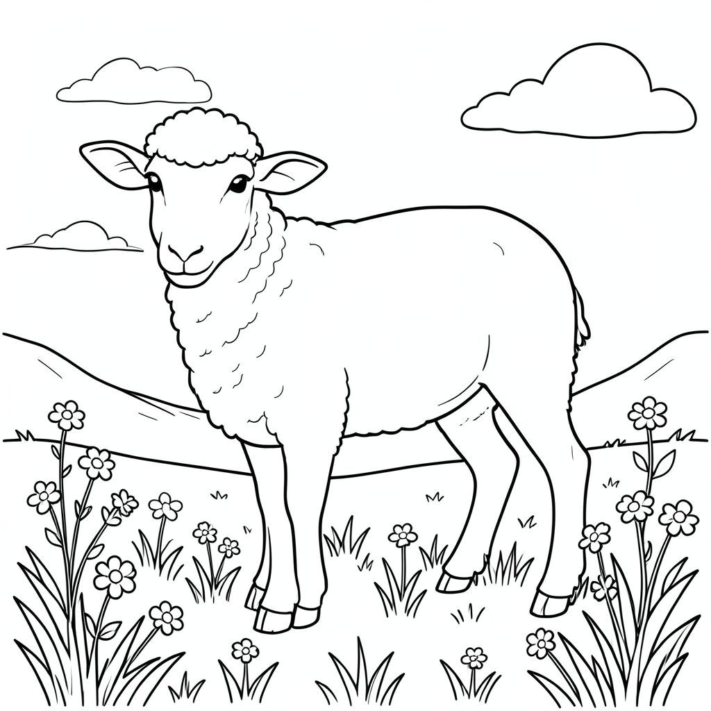 solo, chủ đề đơn, một đầu, hai mắt, hai tai, bốn chân, một đuôi, tỷ lệ tự nhiên, quy mô thích hợp trong môi trường, đúng giải phẫu, Cừu, Đồng cỏ núi cao, hoa nhỏ, ánh sáng mặt trời, bầu trời quang đãng, bầu trời, cỏ, nền đơn giản, sạch sẽ, tuyến tính, trắng tinh khiết, trang màu, nghệ thuật đường, nền trắng, solo, chủ đề đơn, đúng về mặt giải phẫu, giải phẫu hoàn hảo