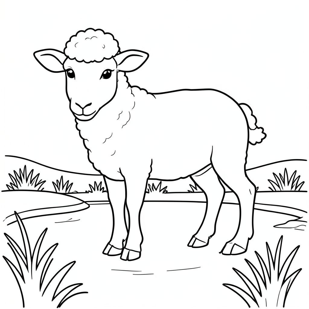 solo, chủ đề đơn, một đầu, hai mắt, hai tai, bốn chân, một đuôi, tỷ lệ tự nhiên, quy mô thích hợp trong môi trường, đúng giải phẫu, Cừu, lạch, cỏ, đồng cỏ, bằng phẳng, đơn giản, dọn dẹp, lý lịch, tinh khiết, nhỏ, sách truyện, trang màu, nghệ thuật đường, nền trắng, solo, chủ đề đơn, đúng về mặt giải phẫu, giải phẫu hoàn hảo
