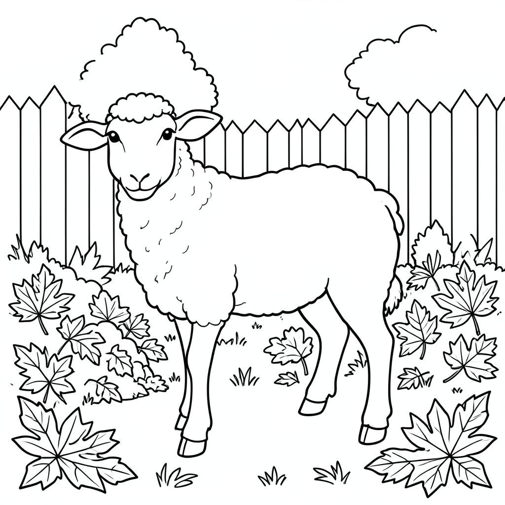 solo, chủ đề đơn, một đầu, hai mắt, hai tai, bốn chân, một đuôi, tỷ lệ tự nhiên, quy mô thích hợp trong môi trường, đúng giải phẫu, Cừu, Mùa thu, sân sau, lá, cọc, ấm áp, nắng, đơn giản, sạch sẽ, lý lịch, tuyến tính, tô màu, nghệ thuật đường, nền trắng, solo, chủ đề đơn, đúng về mặt giải phẫu, giải phẫu hoàn hảo
