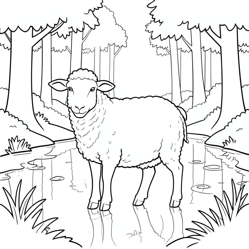 solo, chủ đề đơn, một đầu, hai mắt, hai tai, bốn chân, một đuôi, tỷ lệ tự nhiên, quy mô thích hợp trong môi trường, đúng giải phẫu, Cừu, Rừng, ao, phản chiếu, cây cối, nước trong, ánh sáng mặt trời, đơn giản, lý lịch, sạch sẽ, tinh khiết, trang màu, nghệ thuật đường, nền trắng, solo, chủ đề đơn, đúng giải phẫu, giải phẫu hoàn hảo