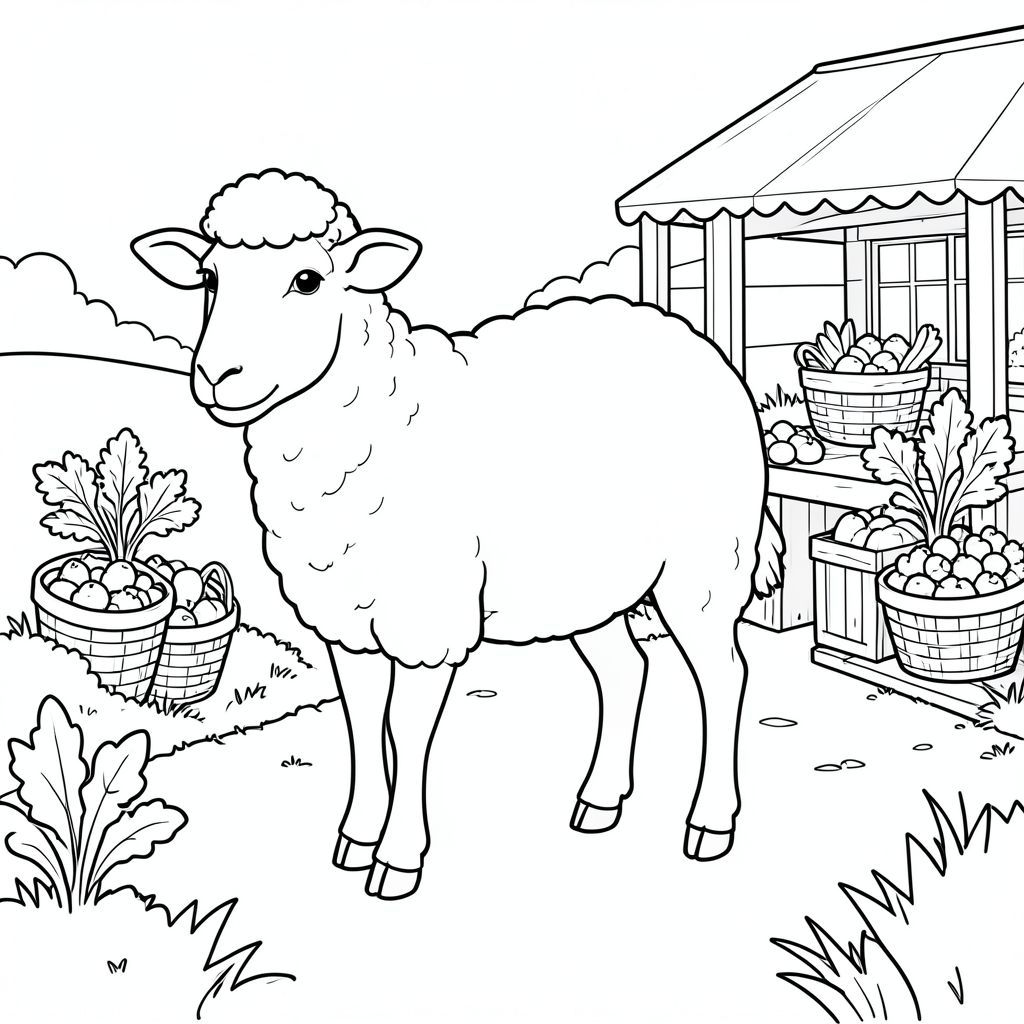 solo, chủ đề đơn, một đầu, hai mắt, hai tai, bốn chân, một đuôi, tỷ lệ tự nhiên, quy mô thích hợp trong môi trường, đúng giải phẫu, Cừu, Sản xuất đứng, đường nông thôn, rau, giỏ, nền đơn giản, sạch sẽ, tinh khiết, sách truyện, đơn giản, lý lịch, tô màu, nghệ thuật đường, nền trắng, solo, chủ đề đơn, đúng giải phẫu, giải phẫu hoàn hảo