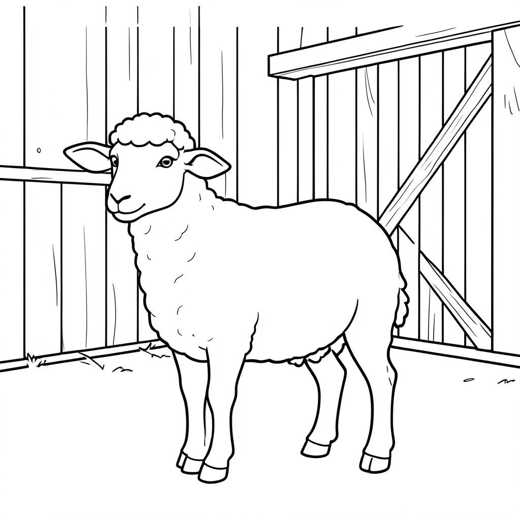 solo, chủ đề đơn, một đầu, hai mắt, hai tai, bốn chân, một đuôi, tỷ lệ tự nhiên, quy mô thích hợp trong môi trường, đúng giải phẫu, Cừu, Tường chuồng, cấu trúc bằng gỗ, nền đơn giản, sạch sẽ, Đơn sắc, nhỏ, bị cô lập, thuần khiết, vẽ đường, trang màu, nghệ thuật đường, nền trắng, solo, chủ đề đơn, đúng về mặt giải phẫu, giải phẫu hoàn hảo