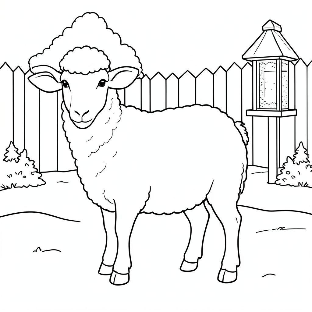 solo, chủ đề đơn, một đầu, hai mắt, hai tai, bốn chân, một đuôi, tỷ lệ tự nhiên, quy mô thích hợp trong môi trường, đúng giải phẫu, Cừu, tuyết, sân sau, mùa đông, đơn giản, sạch sẽ, máng ăn chim, nhỏ, trắng, lý lịch, tuyến tính, trang màu, nghệ thuật đường, nền trắng, solo, chủ đề đơn, đúng về mặt giải phẫu, giải phẫu hoàn hảo