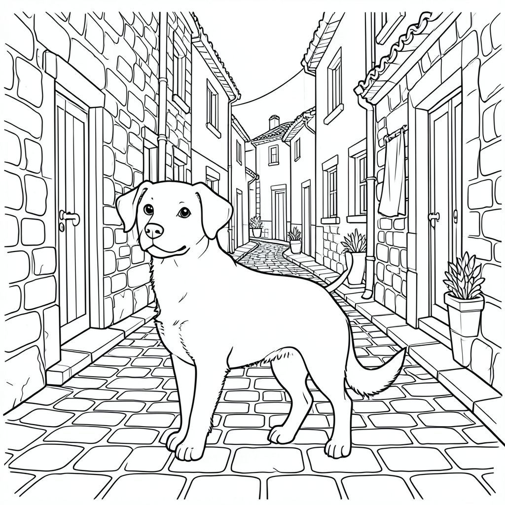 solo, chủ đề đơn, một đầu, hai mắt, hai tai, bốn chân, một đuôi, tỷ lệ tự nhiên, quy mô thích hợp trong môi trường, đúng giải phẫu,, đá cuội, hẻm, hẹp, quanh co, Địa Trung Hải, làng, các tòa nhà, đá, lát gạch, giặt ủi, trang màu, nghệ thuật đường, nền trắng, solo, chủ đề đơn, chính xác về mặt giải phẫu, giải phẫu hoàn hảo