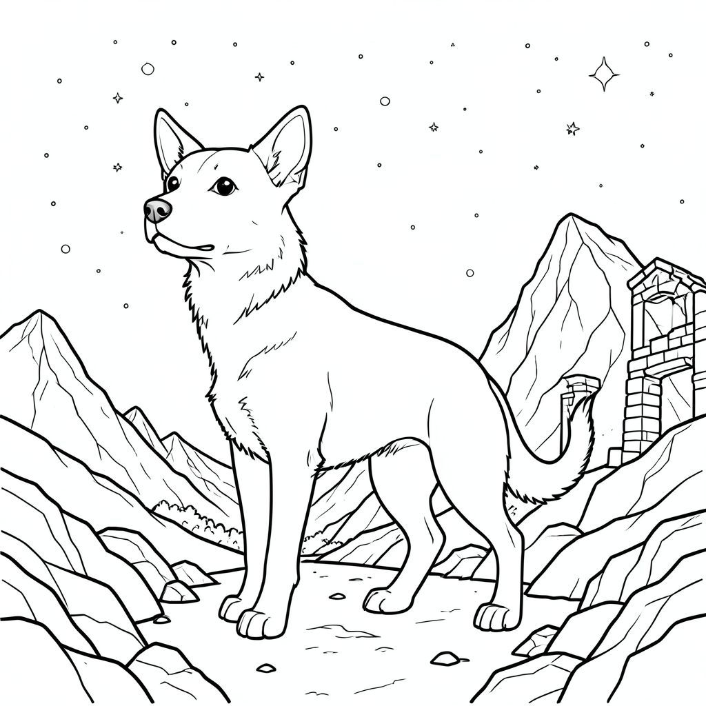 solo, chủ đề đơn, một đầu, hai mắt, hai tai, bốn chân, một đuôi, tỷ lệ tự nhiên, quy mô thích hợp trong môi trường, đúng giải phẫu,, Đỉnh núi, hoang vắng, đá, hoang vắng, rộng lớn, Bầu trời, các ngôi sao, đêm, xưa, tàn tích, trang màu, nghệ thuật đường, nền trắng, solo, chủ đề đơn, đúng về mặt giải phẫu, giải phẫu hoàn hảo