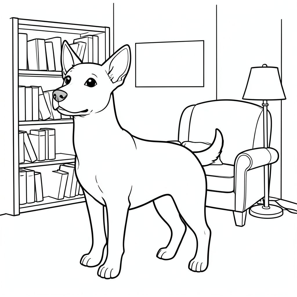 solo, chủ đề đơn, một đầu, hai mắt, hai tai, bốn chân, một đuôi, tỷ lệ tự nhiên, quy mô thích hợp trong môi trường, đúng giải phẫu,, giá sách, ghế bành, đèn, ấm cúng, Den, đơn giản, sạch sẽ, lý lịch, tinh khiết, nhỏ, trang màu, nghệ thuật đường, nền trắng, solo, chủ đề đơn, đúng về mặt giải phẫu, giải phẫu hoàn hảo