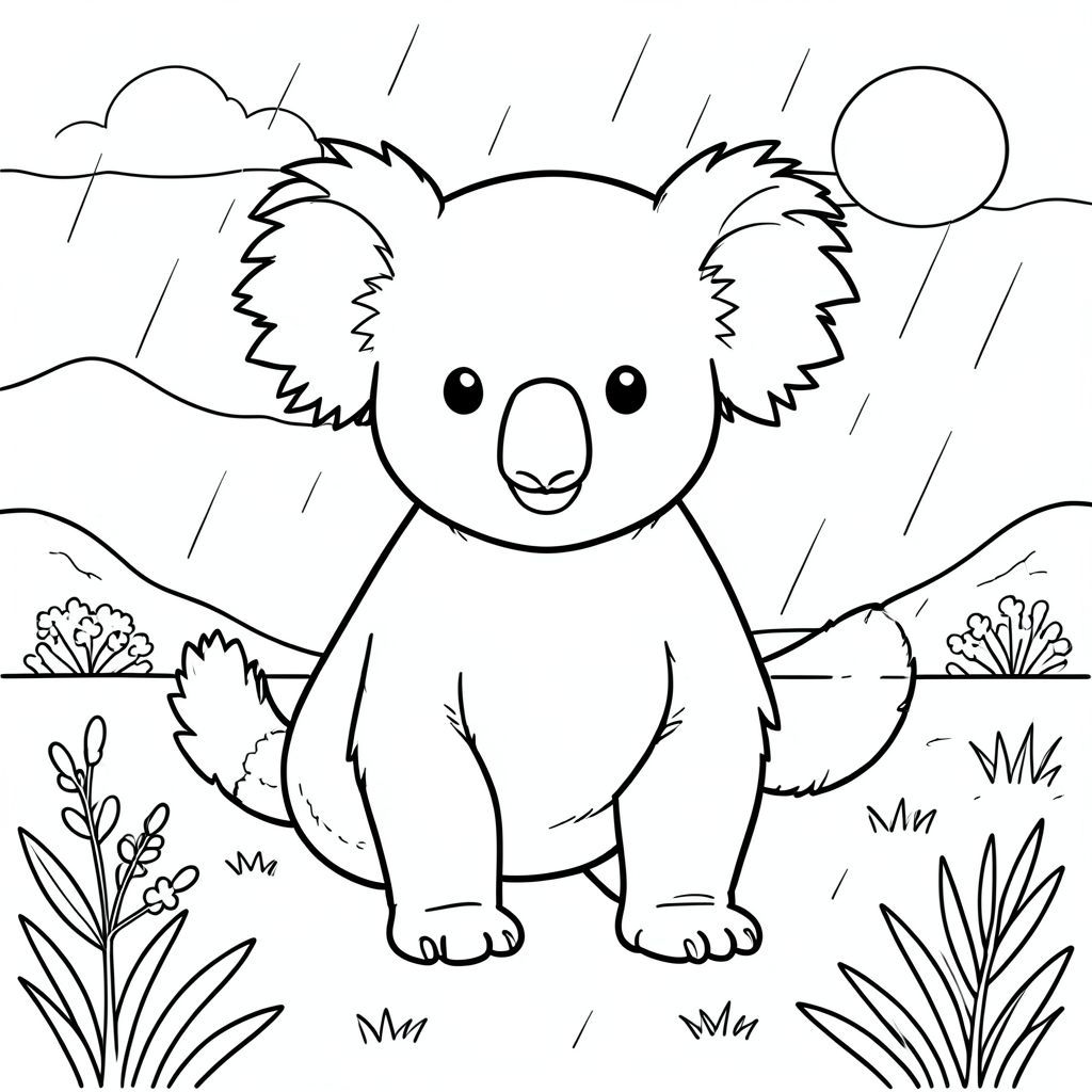 solo, chủ đề đơn, một đầu, hai mắt, hai tai, bốn chân, một đuôi, tỷ lệ tự nhiên, quy mô thích hợp trong môi trường, đúng giải phẫu, Koala, cánh đồng, mưa mùa xuân, ánh sáng mặt trời, bầu trời quang đãng, bầu trời, nền đơn giản, sạch sẽ, tuyến tính, trắng tinh khiết, đơn giản, trang màu, nghệ thuật đường, nền trắng, solo, chủ đề đơn, đúng về mặt giải phẫu, giải phẫu hoàn hảo