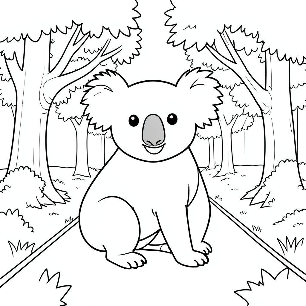 solo, chủ đề đơn, một đầu, hai mắt, hai tai, bốn chân, một đuôi, tỷ lệ tự nhiên, quy mô thích hợp trong môi trường, đúng giải phẫu, Koala, cây, đại lộ, con đường, công viên, lốm đốm, ánh sáng mặt trời, dọn dẹp, đơn giản, lý lịch, tuyến tính, trang màu, nghệ thuật đường, nền trắng, solo, chủ đề đơn, đúng về mặt giải phẫu, giải phẫu hoàn hảo