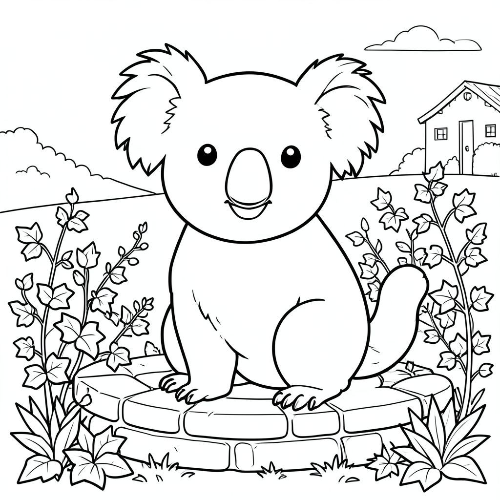 solo, chủ đề đơn, một đầu, hai mắt, hai tai, bốn chân, một đuôi, tỷ lệ tự nhiên, quy mô thích hợp trong môi trường, đúng giải phẫu, Koala, đá giếng, vườn, cây thường xuân, quốc gia, nhỏ, đơn giản, dọn dẹp, lý lịch, nông thôn, hòa bình, trang màu, nghệ thuật đường, nền trắng, solo, chủ đề đơn, đúng về mặt giải phẫu, giải phẫu hoàn hảo
