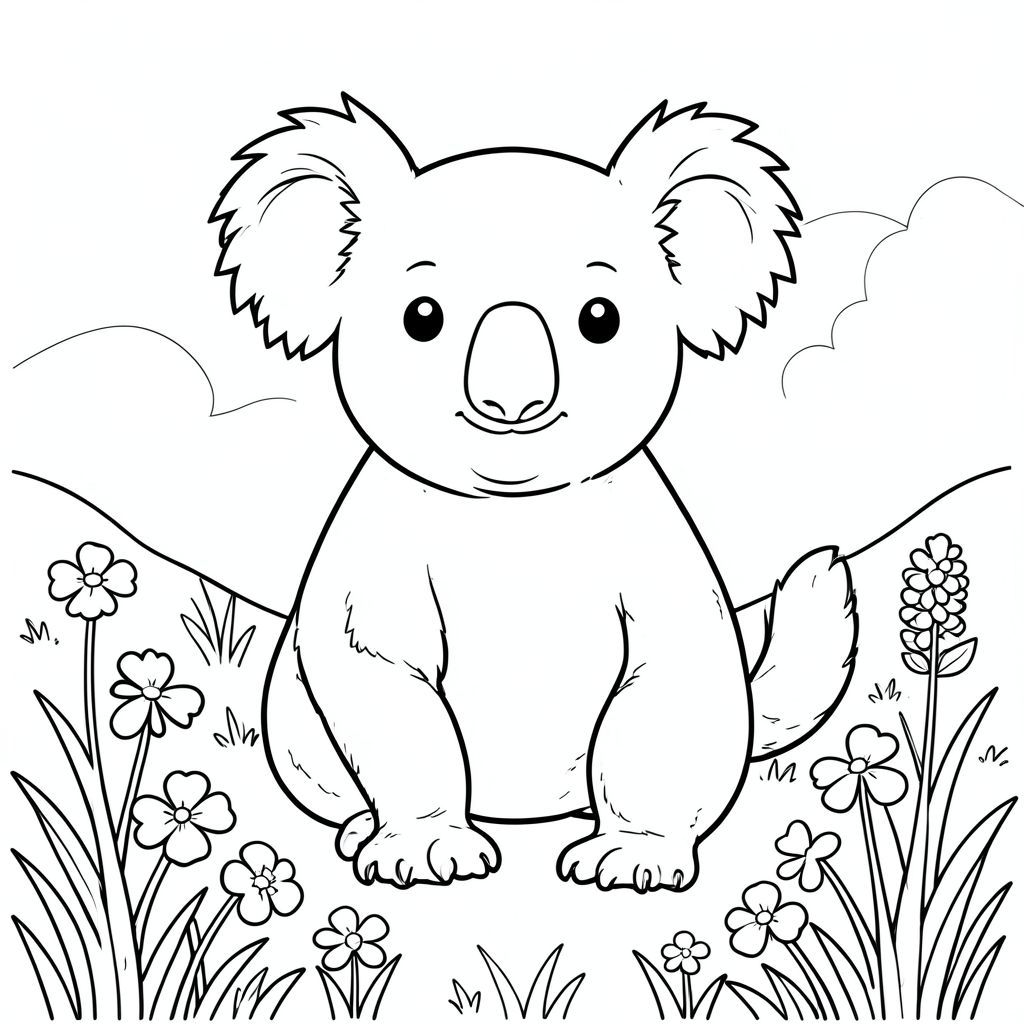 solo, chủ đề đơn, một đầu, hai mắt, hai tai, bốn chân, một đuôi, tỷ lệ tự nhiên, quy mô thích hợp trong môi trường, đúng giải phẫu, Koala, Đồng cỏ, hoa dại, cỏ ba lá, cỏ, ánh sáng mặt trời, gió nhẹ, bầu trời quang đãng, nền đơn giản, đường sạch, rửa màu nước, trang màu, nghệ thuật đường nét, nền trắng, solo, chủ đề đơn, đúng giải phẫu, giải phẫu hoàn hảo