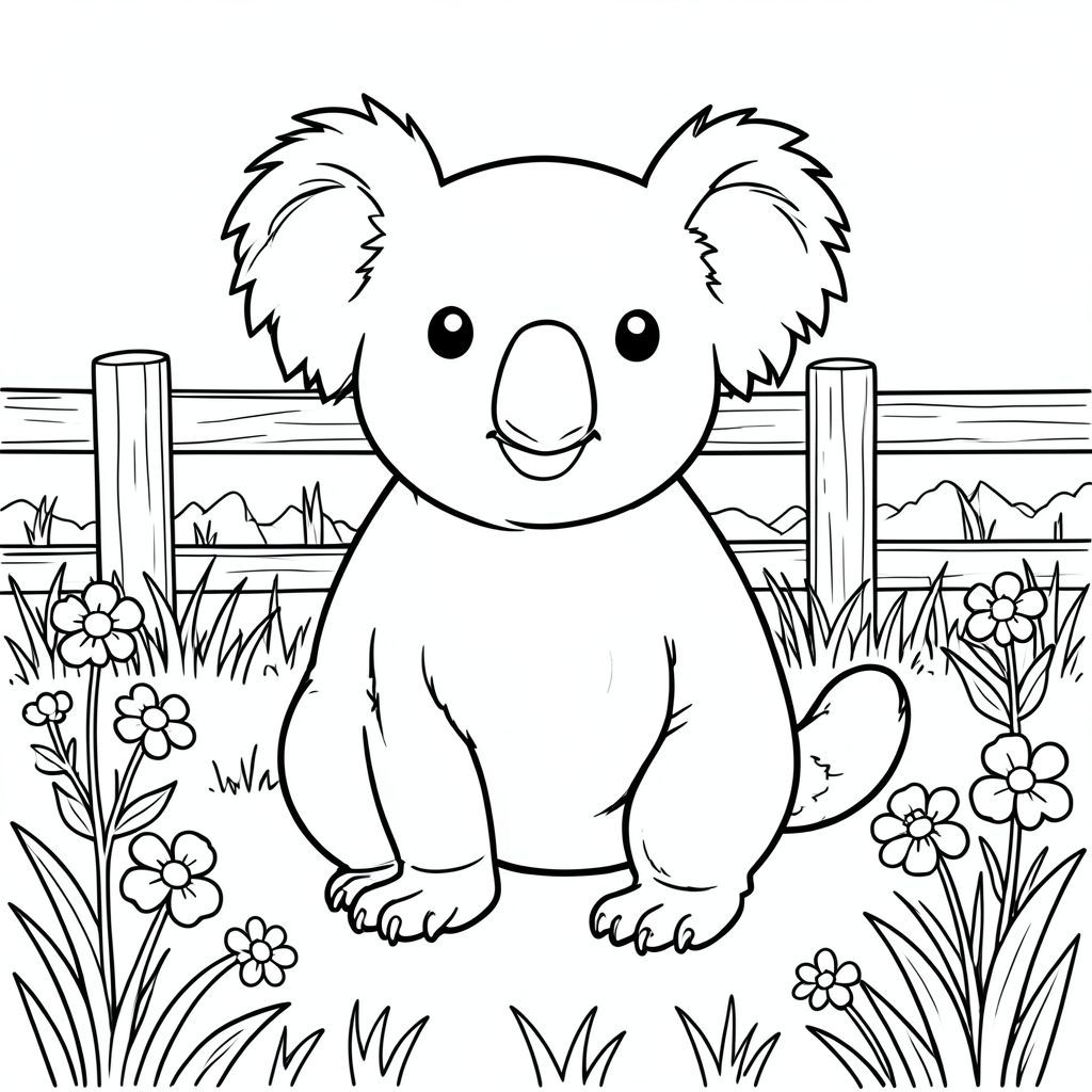 solo, chủ đề đơn, một đầu, hai mắt, hai tai, bốn chân, một đuôi, tỷ lệ tự nhiên, quy mô thích hợp trong môi trường, đúng giải phẫu, Koala, Đồng cỏ, nắng, cánh đồng, cỏ, hoa, hàng rào gỗ, nền đơn giản, dọn dẹp, không màu, nội thất trắng, trang màu, nghệ thuật đường, nền trắng, solo, chủ đề đơn, đúng về mặt giải phẫu, giải phẫu hoàn hảo